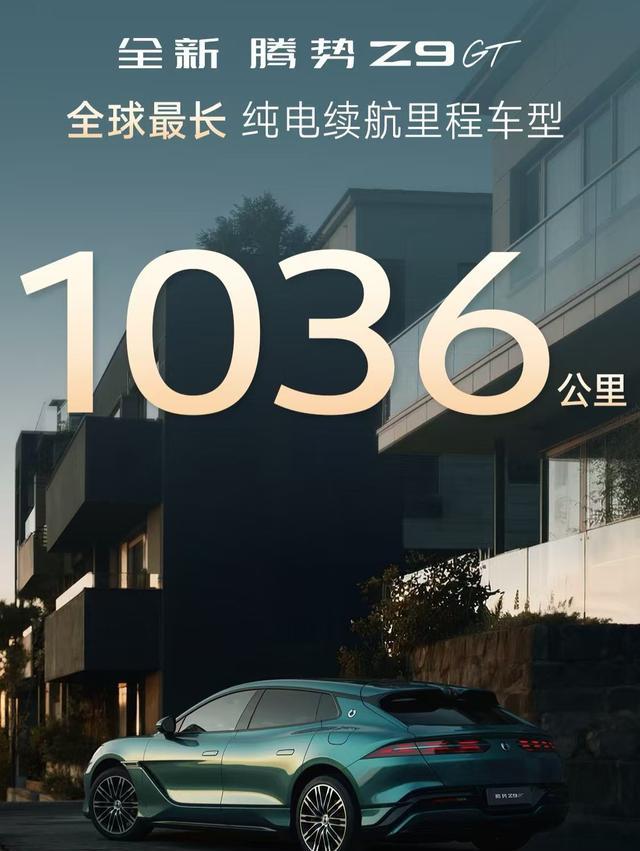 2 月 27 日,腾势放出一条重磅消息:全新Z9GT 纯电版 CLTC 续航做到 1036 公里。官方说法很直接——目前全球最长纯电续航里程车型。