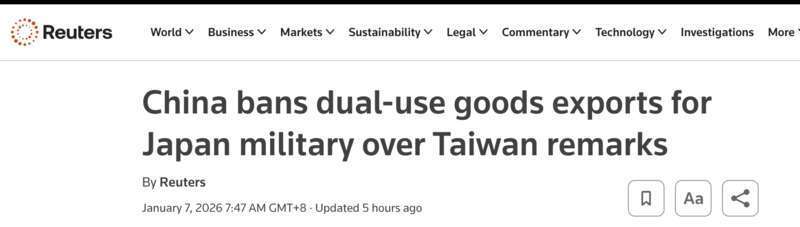 据共同社、《日本时报》和《日经亚洲》网站等日本媒体报道,自2025年11月日本首相高市早苗发表涉台谬论后,中日关系一直处于紧张状态;中国政府加强经济压力,可能对日本的产业产生多重影响。