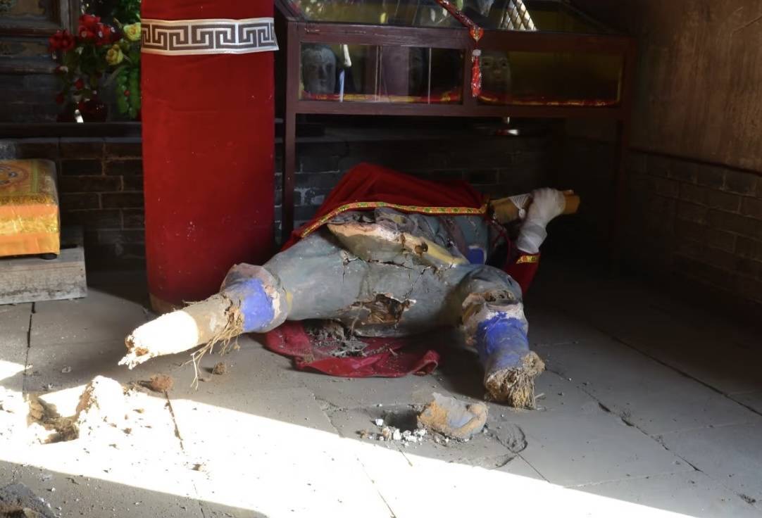 14日下午,记者从洪洞县文旅局一名工作人员处了解到,该塑像目前正在修缮,照片中的情况实为修缮过程中对塑像的移动,并非塑像自己倒了。因塑像中有木头,长时间在泥土里有风化情况,修缮过程中要把木头进行替换。此前,他们也在当地张贴了修缮公告,“这是今年国拨资金下来所进行的修缮工作。”